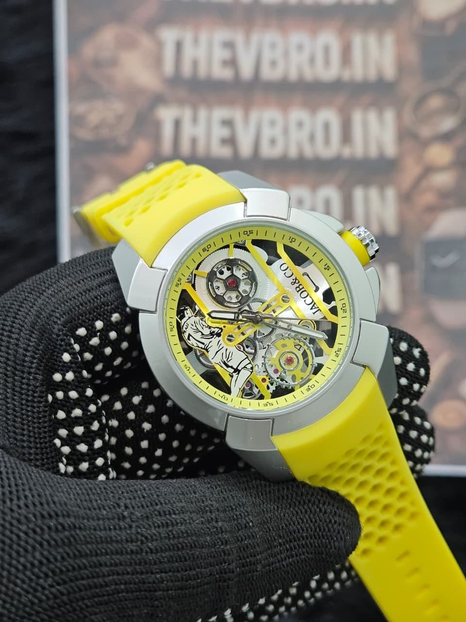 Stand out with the bold and energetic Jacob & Co CR7 Edition Skeleton Watch (Yellow), exclusively at THEVBRO.IN.