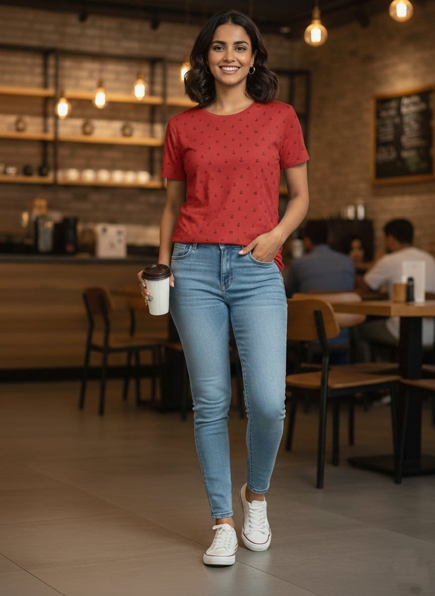 This U.S. Polo Assn. t-shirt is a vibrant and comfortable staple with a playful twist. The bright red body is covered in a subtle yet detailed all-over print of tiny polo players and brand logos. The classic round neck and half sleeves ensure a timeless and versatile fit.